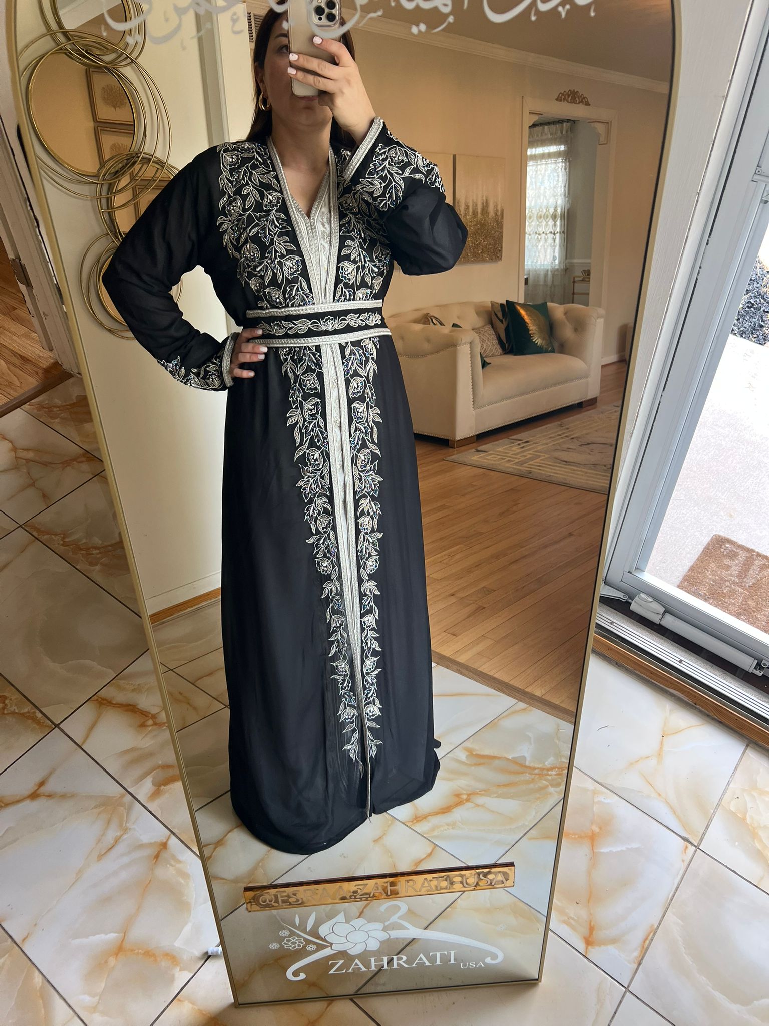 Experience the ethereal elegance of the Shefon Quftan, crafted from soft, flowing chiffon fabric that drapes beautifully for a refined silhouette. Adorned with intricate floral embroidery, this kaftan effortlessly blends grace and comfort. Perfect for special occasions or elevating your everyday wardrobe, it’s a timeless piece that embodies sophistication and delicate charm.